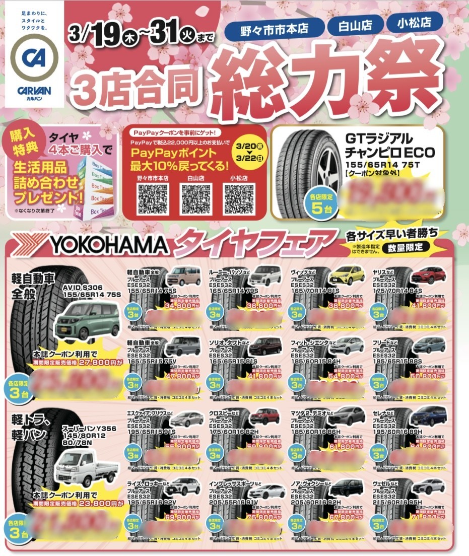 カルバン小松・白山店・野々市本店合同『大総力祭』開催いたします!!