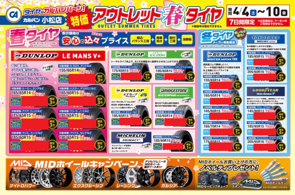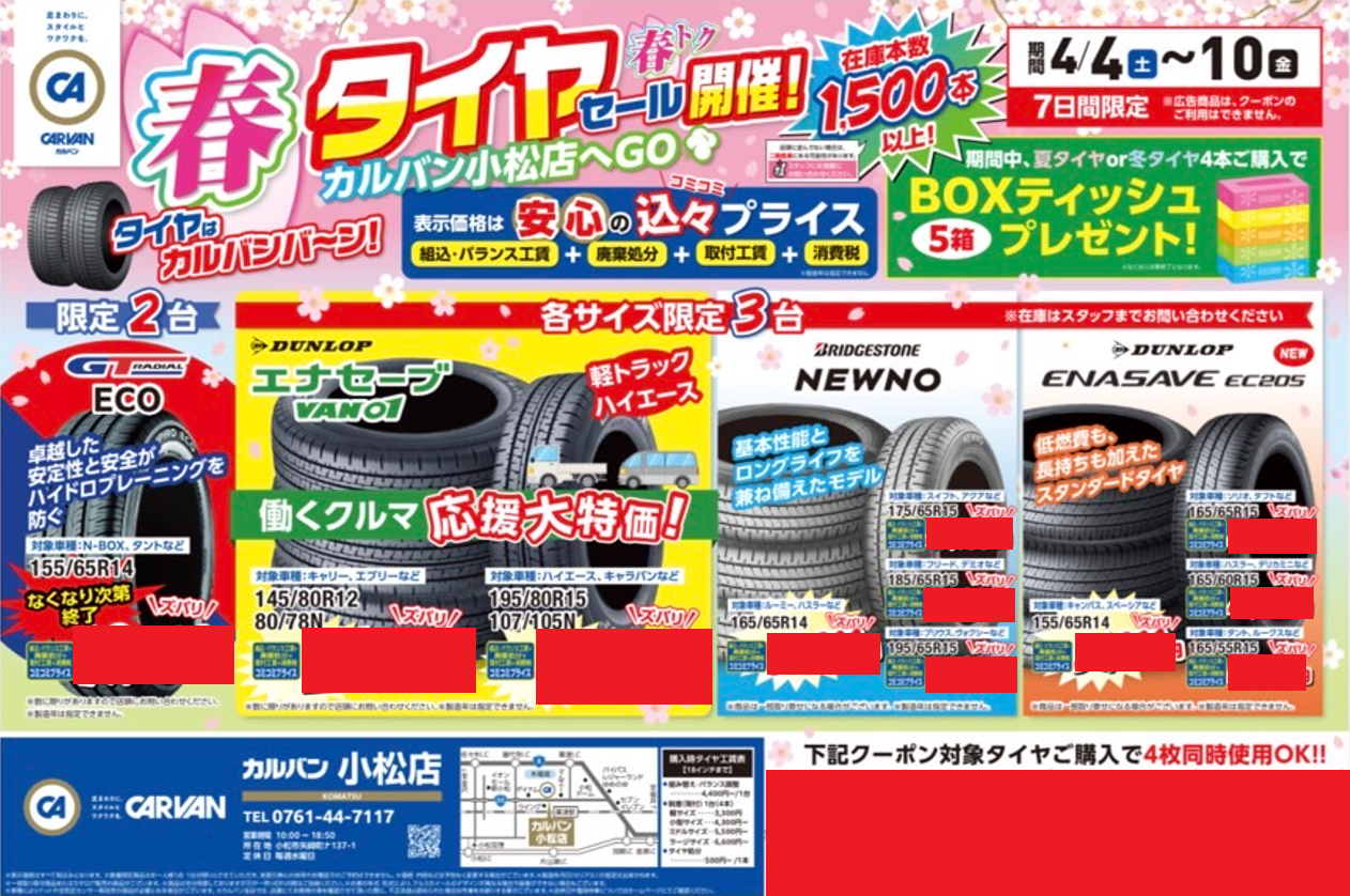春トク!!春のタイヤセール開催!! カルバン小松店