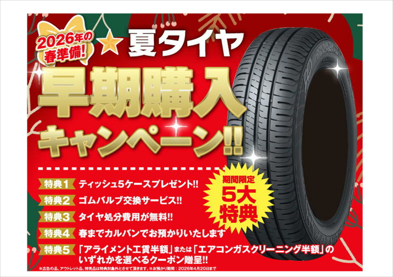 さらに冬タイヤと同シーズン内で購入するとなれば追加のお値引きが期待できます。