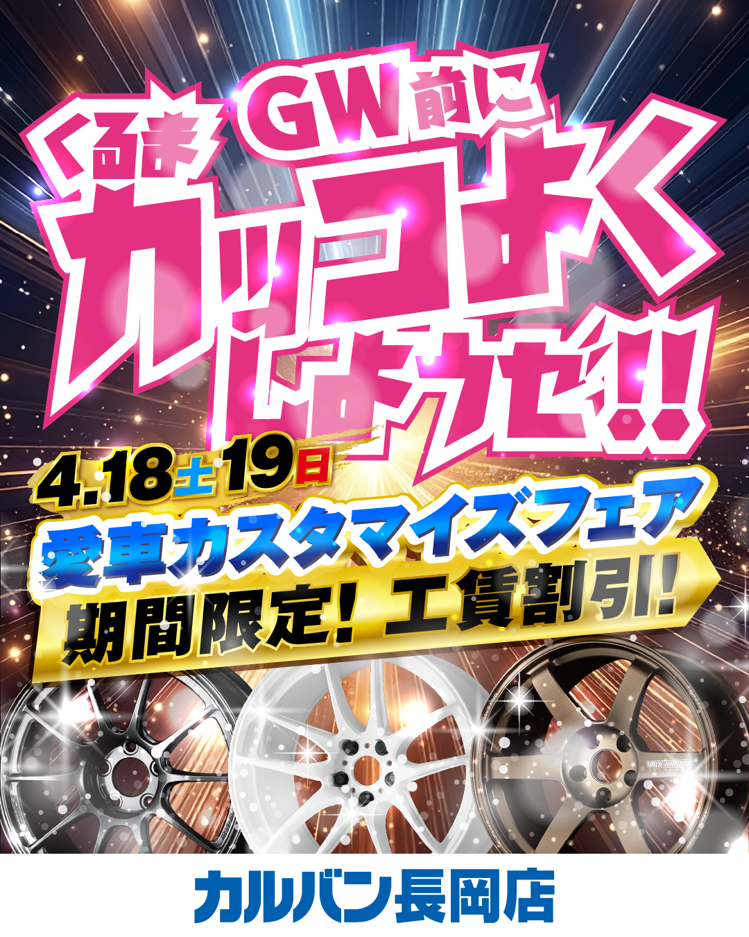 翌週の4月25日からは【GW直前、雨に強いタイヤ&バッテリー大商談会】を計画中。