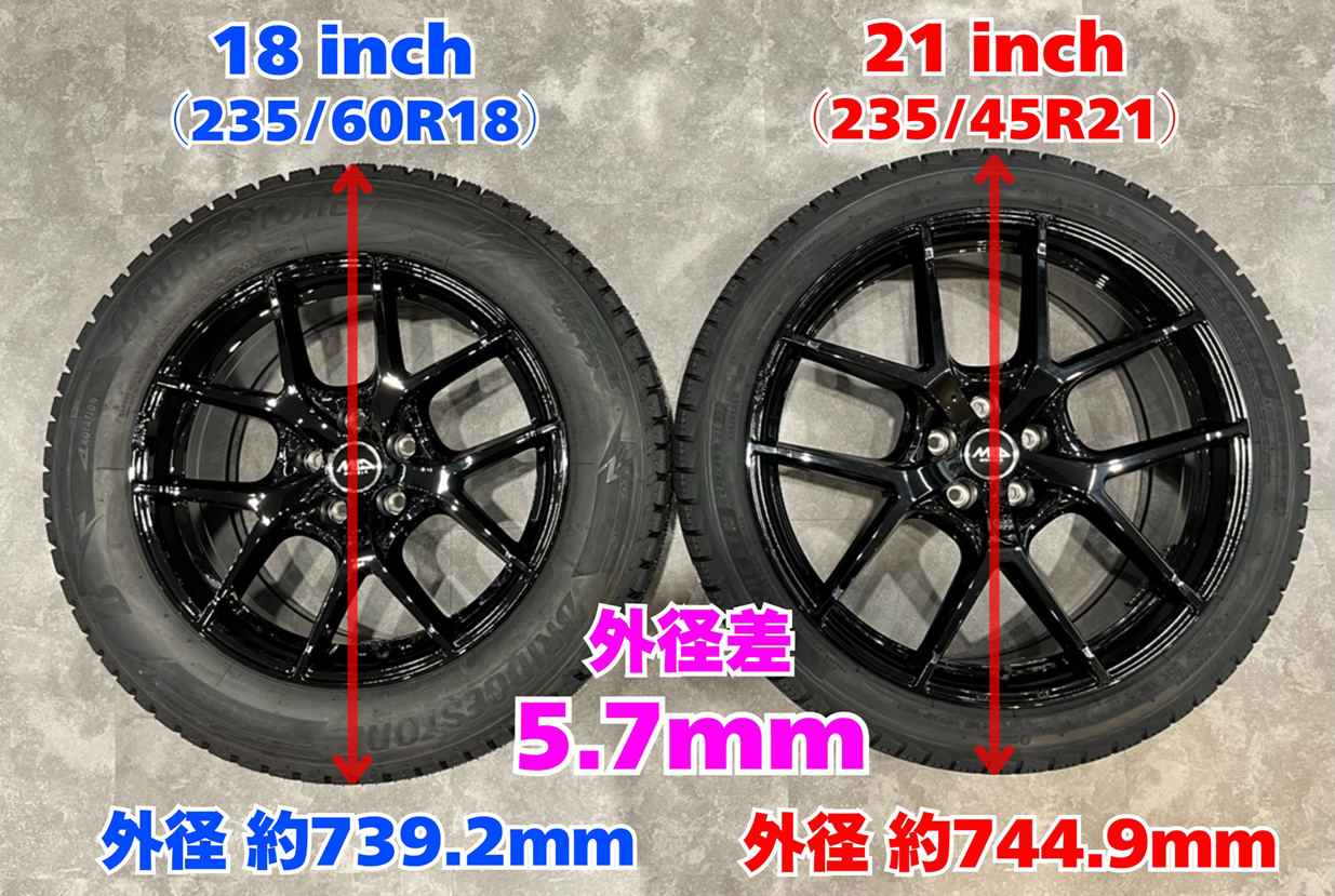 にインチダウンした場合、タイヤの銘柄によって若干のタイヤ外径の誤差はございますが、