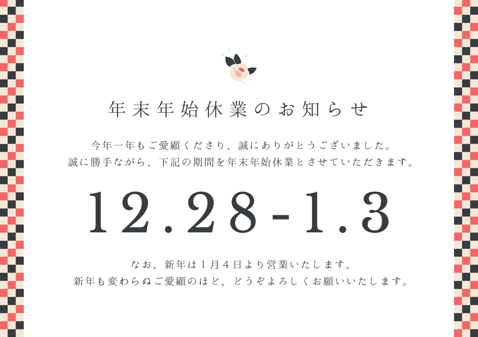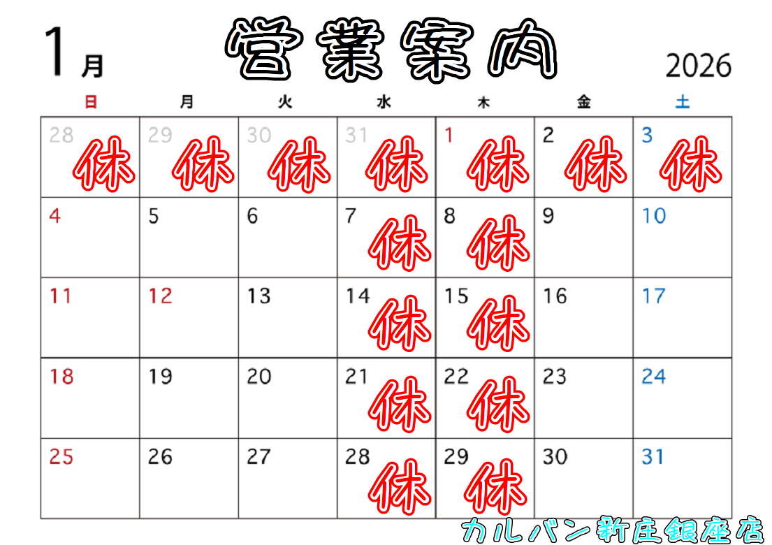尚、1月の営業日も通常とは異なりますのでお気を付けください。