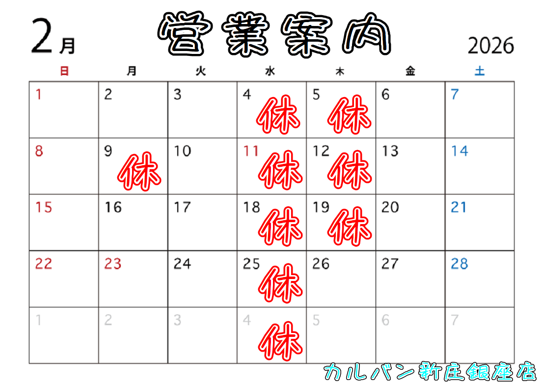 2026年2月の営業案内です!